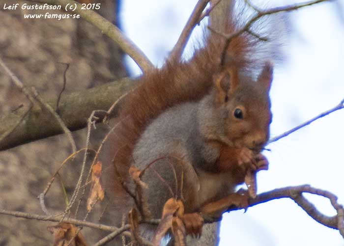 En hel del fågel fick vi se. Roligast var nog Domherreparet vid Råstasjöns matning. De vågade sig aldrig ner till själva matplatsen men jag fick några bilder av hannen när den satt och spanade i ett träd.