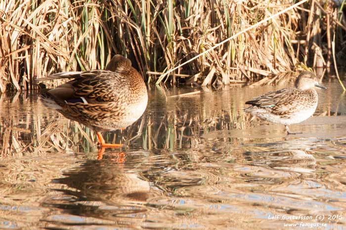 Vi fick en jättehärlig promenad, bra anordat med stigar längs vattenstråken så vi kommer definitivt att komma tillbaka senare i vår. Och visst fick vi se Salskraken, dessutom ett större antal Sångsvanar, många gräsänder men endast en Kricka (en hona). En Gärdsmyg korsade vår väg, for fram som ett skållat troll som vanligt, så det blev ingen bild. Vi hörde också en Gröngöling ropa.