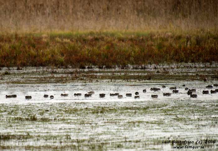 Det tog en stund att köra dit. Det var en helt ny lokal för oss men inga direkta problem att hitta dit. Trångt var det på den lilla p-platsen men vi lyckades tränga oss in. Vi följde sedan en stig in i naturreservatet. Vi såg efter en kort stund var skådarna höll till. Efter att ha försökt ta oss dit den direkt vägen (som fick avbrytas pga vatten) hittade vi fram till sist genom att gå runt.