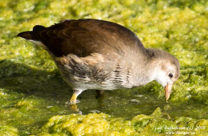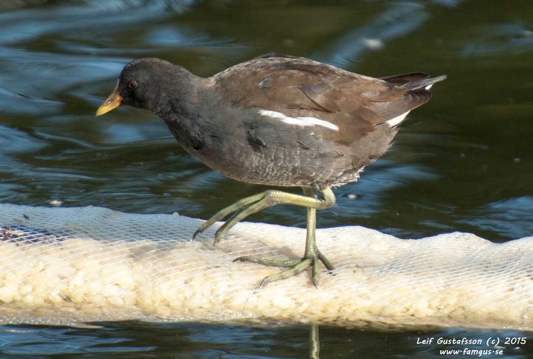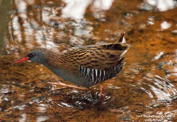 Att hitta detta lärkträd visade sig inte helt lätt. Vi gick ner i dalen och hittade inget. Vi fortsatte istället då mot Råstasjön för att kolla vad det fanns fär fåglar där. Varken vid vaken i NV eller vi matningsstället i NV sågs något speciellt. Däremot fick vi igen syn på Vattenrallen vid "rören". Den fanns på samma ställe som sist, dvs lite längre till vänster. Den kom på meterns avstånd från oss så det blev några nya bilder.