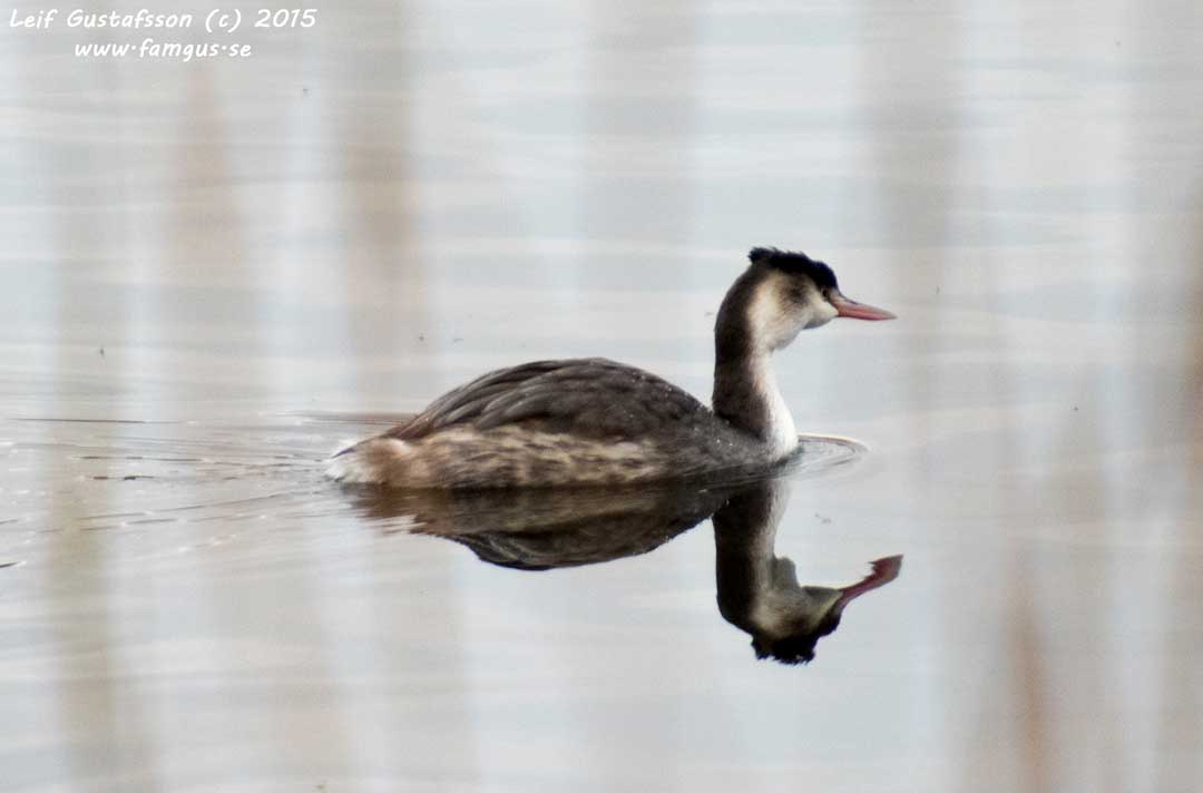 Väl framme vid tornet så visade det sig att jag inte var först. Det stod en man där som jag pratade lite kort med innan han gav sig av. Han hade sett Kungsfiskaren men inte på ett par dagar. Däremot så hade han sett en Sjöorre på morgonen. Den fick jag aldrig senare syn på. Men väl en svarthakedopping i vinterdräkt. Tittade ett bra tag på den och jämförde med bilder i fågelboken. Tyvärr alldeles för långt avstånd för att fotografera på.