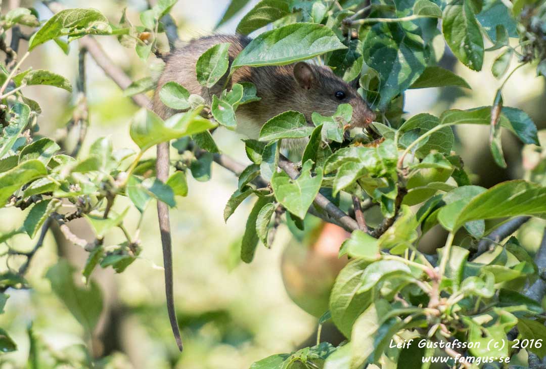 Brunråtta i äppelträd
