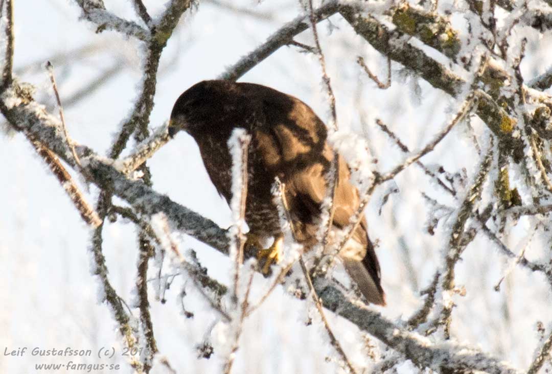 Kunde också se en Ormvråk som patrullerade på andra sidan vägen. Eftersom den slog sig ner i ett träd i närheten lyckade jag få några bilder på den sittande. Vråkar tenderar det annars mest att bli flygbilder på.