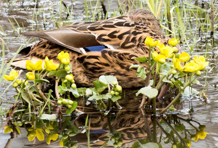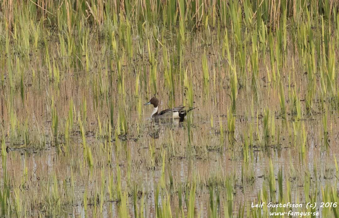På vägen tillbaka såg vi en lustigt färgad Gräsand. La ut en bild på SOF's frågespalt och fick svaret: "Denna individ är leucistisk och saknar det svarta-gråa pigmentet eumelanin, medan feomelaninet finns kvar". Fågeln ser du här nedan.
