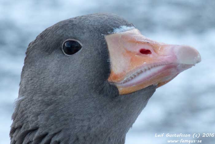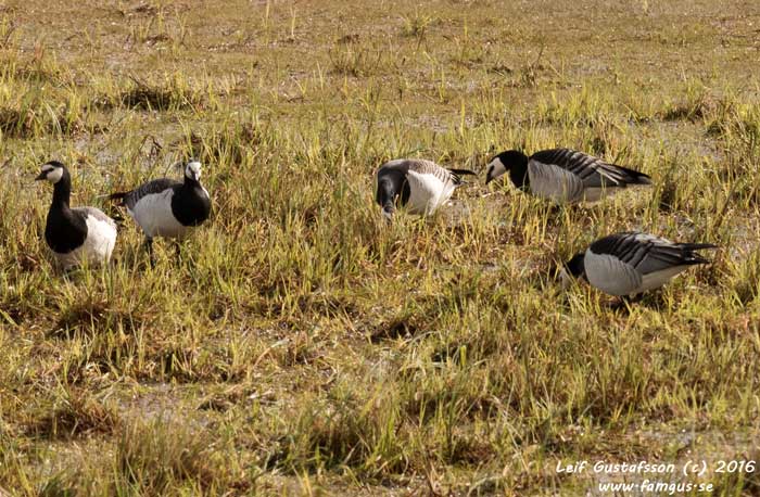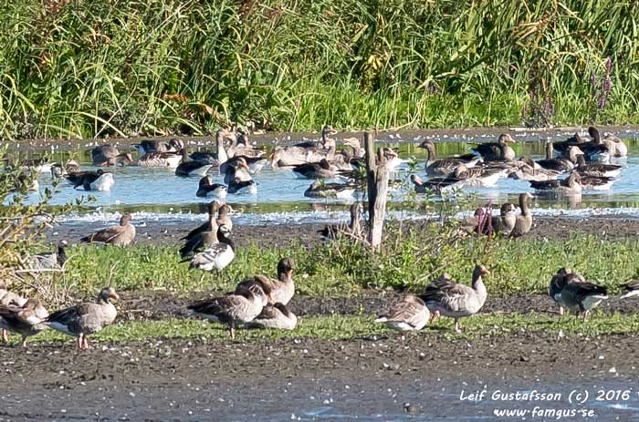 Och visst hade jag det. Jag åkte direkt bort till Hårbyparkeringen och gick ut till fågeltornet. Ganska raskt kunde jag få in ett ca tiotal Fjällgåss som tydligen låg där de alltid brukade ligga. Kul var det i alla fall. Man såg tydligt bläsen och orbitalringen runt ögat som identifierar arten.