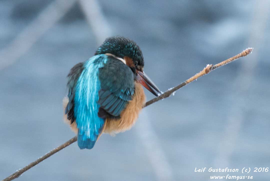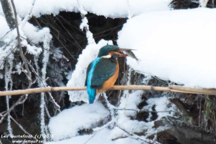 När vi kom tillbaka till vandrarhemsbron så smattrade makerorna igen. Kungsfiskaren var på plats. Så det blev ett antal ytterligare foton. Sen var det dags att åka hem. Mina fingar var helt blåfrusna och det blev en smärtsam process i bilen när de vaknade till liv igen.