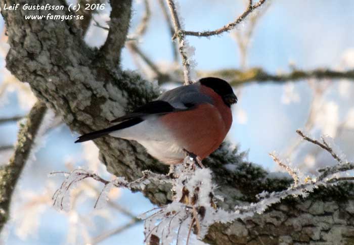 Vilken förmiddag det har varit. Strålande sol och så där vintrigt bitande kallt. Bara minus 5 hemma men hela minus 12 när jag kom till Hjälstaviken. Men vilka vyer. Tjock rimfrost täckte träd, buskar och vass och jag hade sol mest hela tiden.