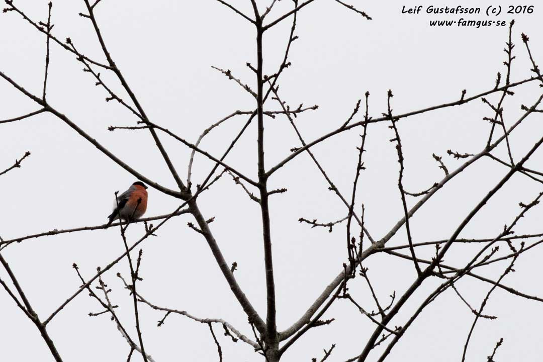 Precis vid Parnassen, i trädkronorna fanns en flock Domherrar. Jag hörde deras läten och såg sedan säkert 10 stycken som for omkring ganska högt upp och åt något från träden.