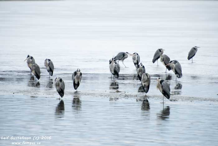 Vid Råstasjön stod Gråhägrarna som fastfrusna. Många var de som vanligt men de såg ut att ha kallt. Vid matningen var det livat. Vi såg i stort sett samma arter som på nyårsdagen. Bara Domherren och Nötskrikan saknades. Istället såg vi Nötväckan. Men både Bofin och Rödhake sågs.