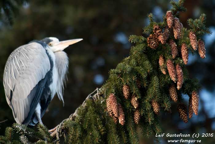 Var ute i nästan 3 timmar. Två varv runt Råstasjön och nästan ett varv runt Lötsjön blev det. Sedan var fötterna som isbitar. Kallt är det ute fortfarande, runt 7-8 minusgrader och halvklart. Det roligaste på rundan idag var de två Hägrar som hade slagit sig ner i en gran. Såg lite lustigt ut, snudd på felplacerat.