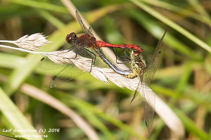Blodröd ängstrollslända, Blågrön mosaikslända, Gulfläckad ängstrollslända och Tegelröd ängstrollslända.