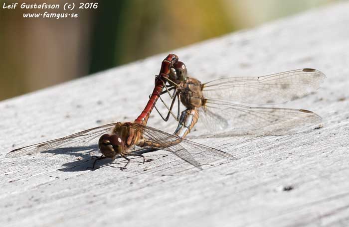 Många trollsländor var i farten, i första hand såg jag Blodröda ängstrollsländor och Tegelröda dito. Även ett par av Gulfläckad dito i parningsbestyr såg jag samt en/flera Blågröna mosaiksländor.