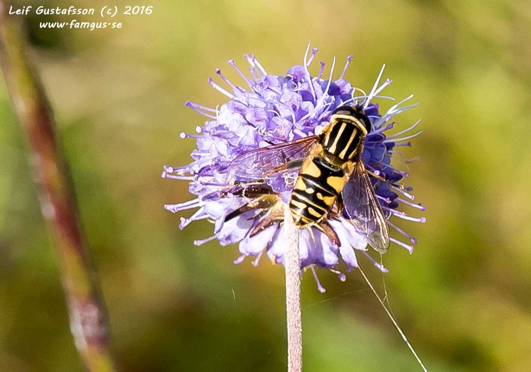 Hade också turen att få se en Bålgeting som fångade en Fältslamfluga som den till sist flög iväg med. Hann ta ett större antal bilder. Vidare såg jag ett antal blomflugor som Artportalen hjälpt mig med identifikationen på. Fortfarande är två flugor oidentifierade även om jag är ganska säker på vilka arter det är. Frågor ligger ute på Artportalen.