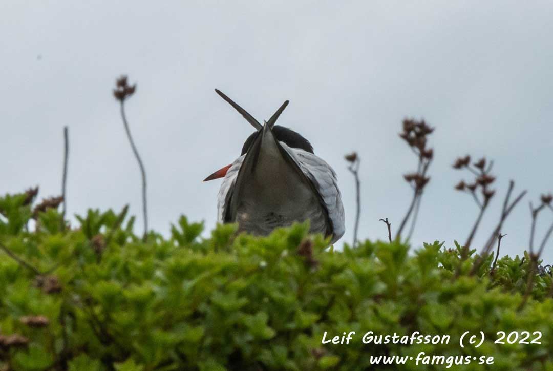 Vi stannade längs vägen strax innan Kokullen. Och där var den ju. Mitt ibland mängden av Vitkindade gäss gick den och stoppade i sig av det frodiga gräset. Ja just det, den Rödhalsade gåsen. Ibland ska man ha tur, den fanns alltså kvar. Efter en bra stund, och många fotografier senare (dock ingen bra ...), gick vi ut till fågeltornet. Väldigt lite folk ute. Vi hade sällskap att bara ett annat par i fågeltornet. Det blev en hel nya arter för året.