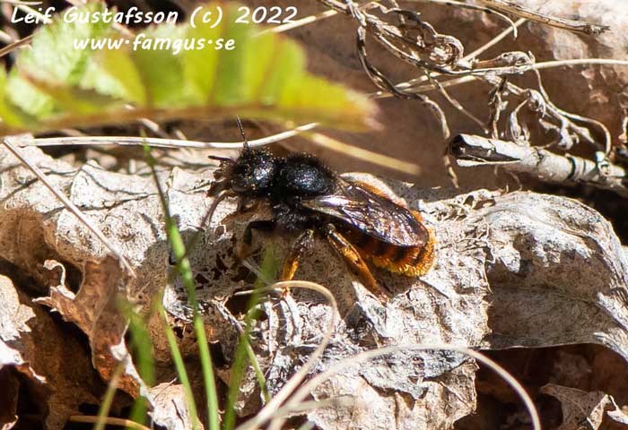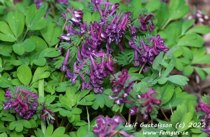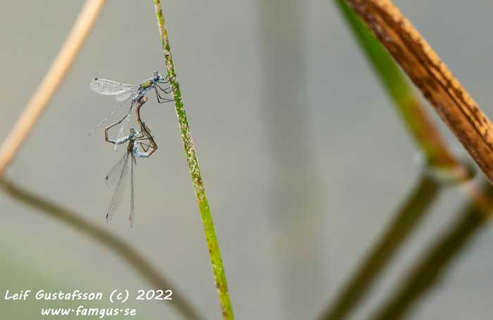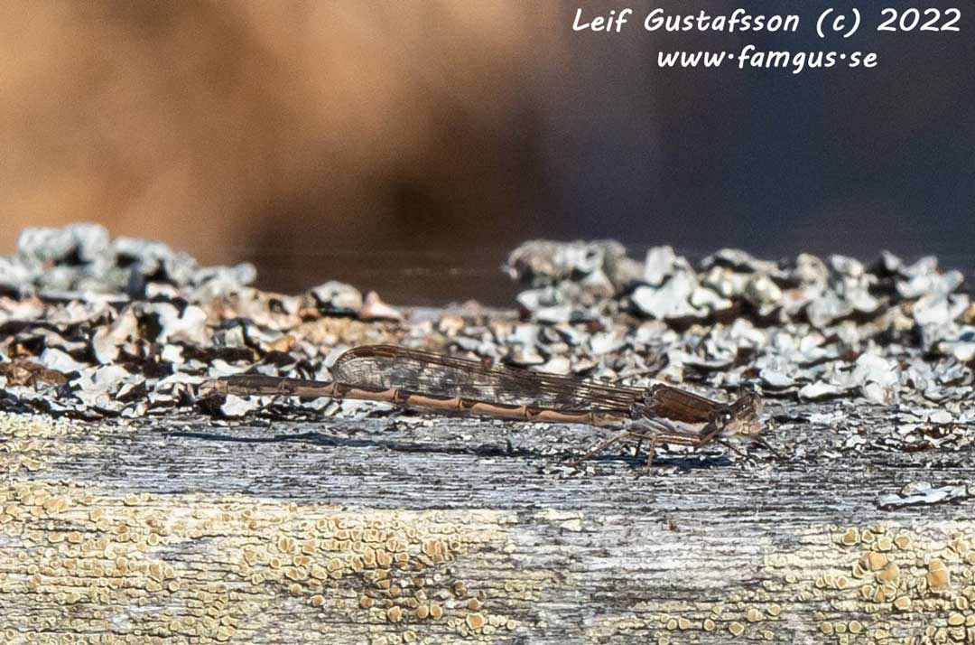 Den börjar en bit in på vägen som leder upp till ett antal hus ovanför "vassområdet". Vi hae aldrig gått den förr, även om vi många gånger gåendes på spången pratat om alla fågelröster vi hörde från skogsbacken. Nu gick vi här, bland en enorm mängd blåsippor, några vitsippor och vårlök. En fantastisk promenad, blev en del fågelobservationer också. Årets första Trädkrypare kunde noteras. Fram kom vi där spången slutade, vid "Ljugarbänken" närmare bestämt. Vi stannade en stund och spanade. På väg därifrån såg vi ett flertal Vinterflicksländor, även parningar sågs.