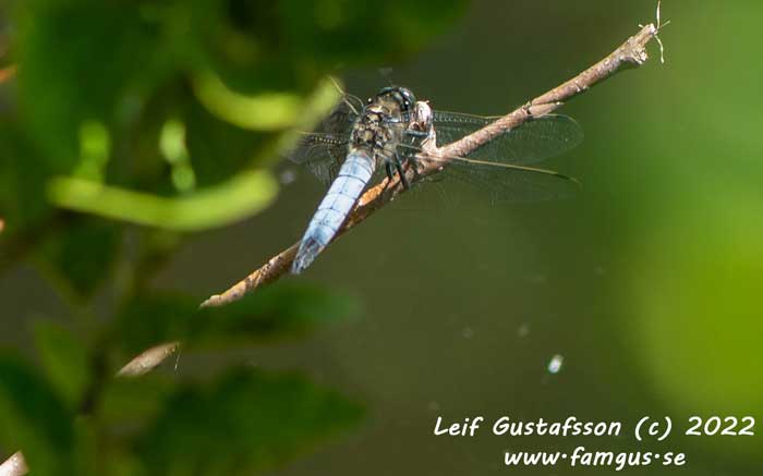 Många trollsländor flög över den lilla gölen. Främst Blågröna mosaiksländor, men en och annan Brun mosaikslända. Gott om Pudrade smaragdflicksländor också. Såg även fyra fjärilslarver. En död larv av Brunsprötad skymningssvärmare, men tre levande varav jag artbestämt två (Blågrått aftonfly samt Gulsporrefly).