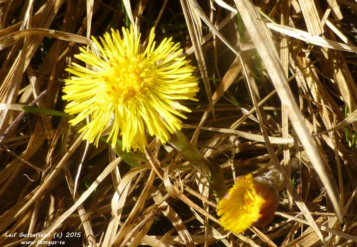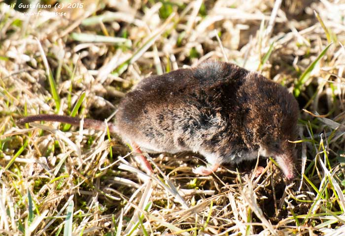 Men det bästa var nästan att årets första tussilago hade orkat tränga igenom fjolårslöven. I en soldränkt backe vid Kloserbacken såg vi ett antal härliga gula tussilago. Nu kan man börja tro på våren. Vi hittade äöven en död liten näbbmus som nästan låg på stigen. Välbehållen, så den hade nog inte tagits av någon fågel utan självdött. Vi såg även en levande liten mus i Skesta hage. Den skuttade dock blixtsnabbt i skydd så vilken sort det var har vi ingen aning om.