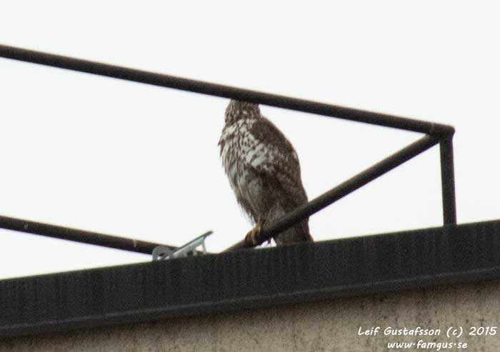 Dels en Häger, tror för första gången i Lötsjön, som stod uppställd precis blickstilla bland buskar som hade en del höstlöv kvar. Sen såg jag för andra gången en Duvhök som satt på en ställning på taket till ett av 5-6 våningshusen i den östra delen av Råstasjön. Tror det är en ungfågel.