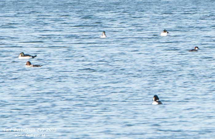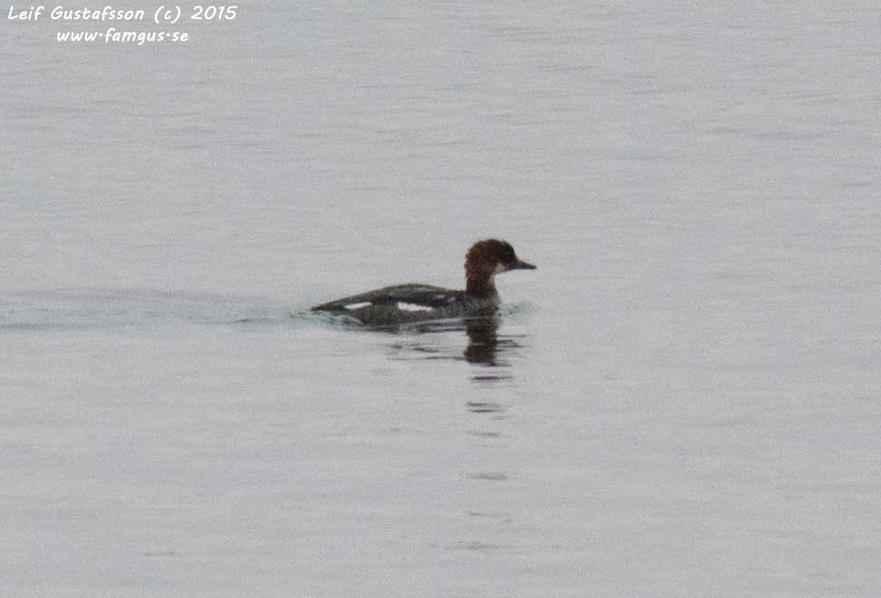 Vi fortsatte i stället mot Höggarn med början i Svärdsnäsviken. Där såg vi tre Salskrake par, mängder av Storskrake och relativt många Knipor. På håll kunde vi se två Havsörnar som seglade i vindarna. Dock inga Alfåglar vilket jag hoppats lite på. Vi fortsatte sedan runt hela Höggarns halvön. Vi hörde Tofsmes på ett ställe, dock utan att få syn på dem. Ganska tyst i skogen faktiskt. Eftersom det blåste ganska mycket fick det räcka med Höggarnsrundan, så vi återvände i sakta mak till bilen.