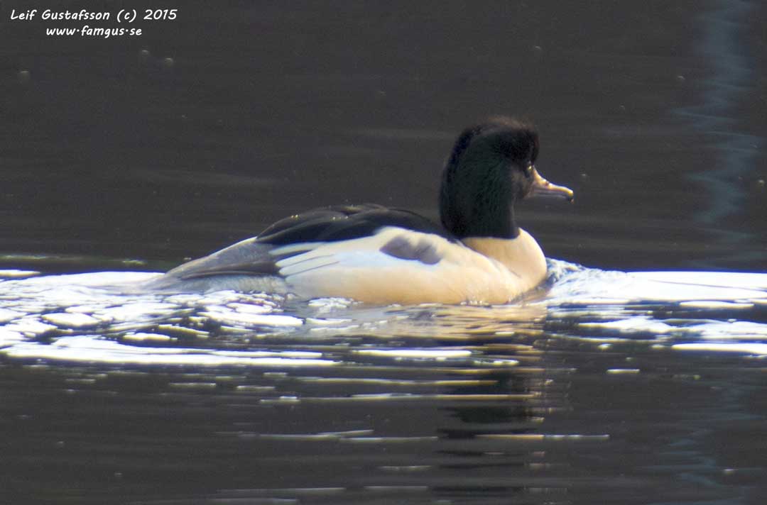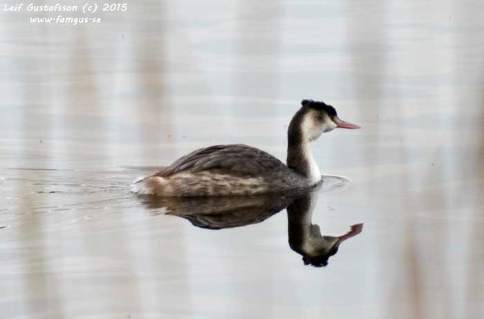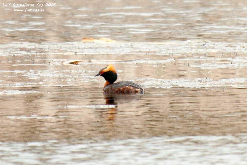 Väl framme vid tornet så visade det sig att jag inte var först. Det stod en man där som jag pratade lite kort med innan han gav sig av. Han hade sett Kungsfiskaren men inte på ett par dagar. Däremot så hade han sett en Sjöorre på morgonen. Den fick jag aldrig senare syn på. Men väl en svarthakedopping i vinterdräkt. Tittade ett bra tag på den och jämförde med bilder i fågelboken. Tyvärr alldeles för långt avstånd för att fotografera på.