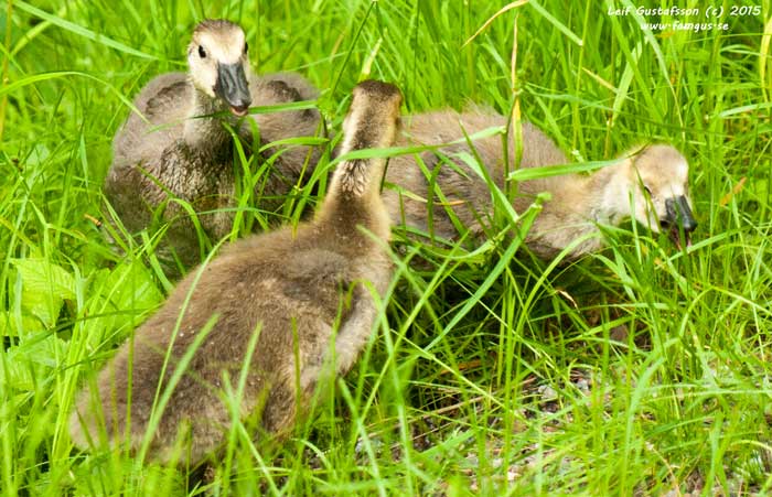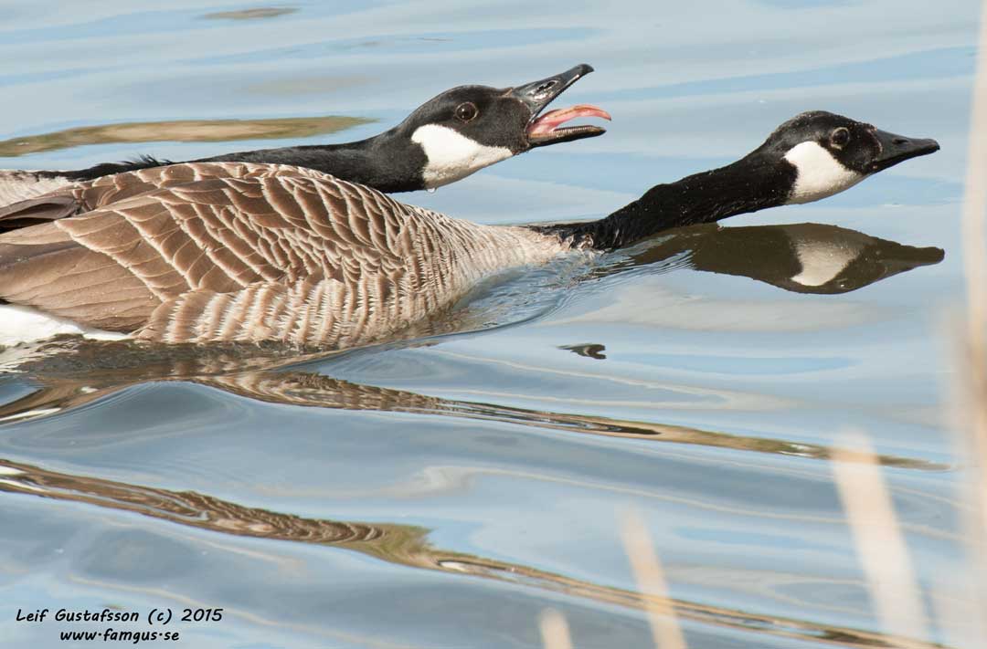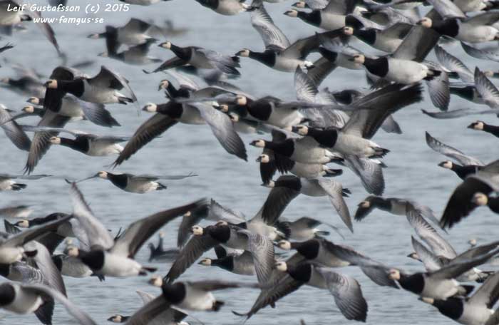 Vi tvärade sedan över ängarna till Hårbyparkeringen. Det var mycket blött så vi fick på vissa ställen riktigt hoppa på tuvorna för att komma framåt. På väg bort mot fågeltornet så hittade vi en plats i lä tillsammans med andra skådare bakom en staplad hög av vita platsinpackade höbalar. Där kunde vi studera gässen utan att tubkikaren vibrerade alltför mycket i vinden. Fem arter gäss kunde vi se: Bläsgås, Grågås, Sädgås, Kanadagås och Vitkindad gås. Spanade förgäves efter någon Spetsbergsgås. Lärkan drillade över våra huvuden, tofsvipor sågs fara fram och tillbaka och det var riktigt vårlikt.