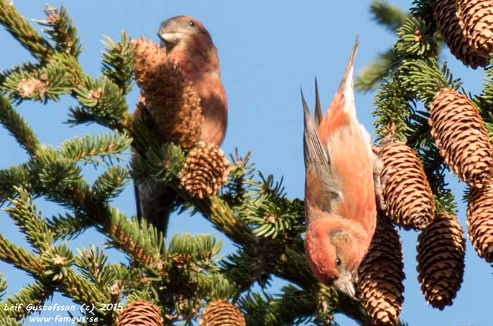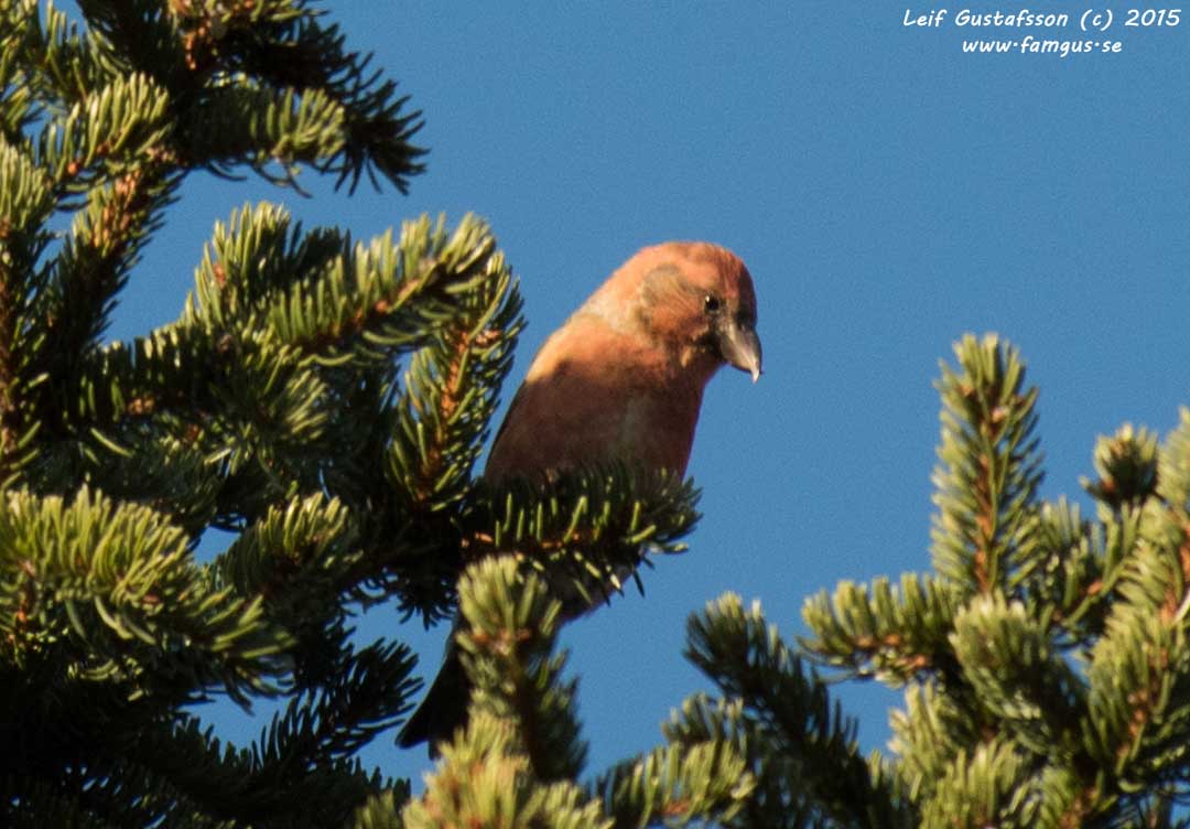 Däremot när jag kom tillbaka till parkeringen så såg jag fem stycken fåglar komma flygande som slog sig ner först högt uppe i en gran, sedan i en björk för attsedan flytta sig tillbaka till granen. Mindre korsnäbbar, 2 hanar och 3 honor. Behövde fotokolla hemma för att artbestämma. Näbben längre än bredare, ganska slank kroppsbyggnad blev mina "bevis".