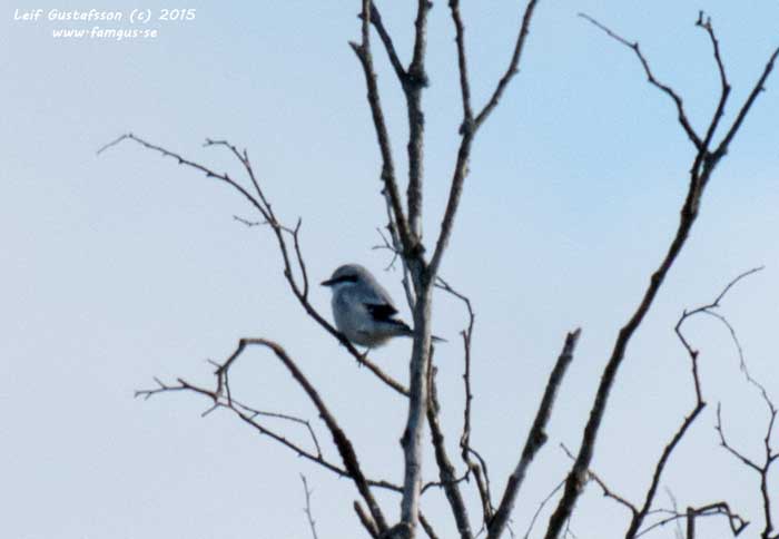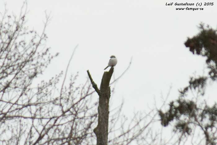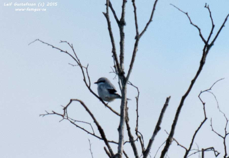 Efter någon timme fick jag sällskap av ett äldre par som också de kände väl till Fysingen. Medan vi stod där så fick vi syn på tre Havsörnen som starx över vattenytan flög med god fart på andra sidan sjön. Paret berättade att Havsörnen hade en boplats där någonstans som de inte använt på något år. Tydligen så finns ett havsörnspar som boar varje år, på lite olika ställen runt sjön, Vi fick sedan syn på en av de tre Havsörnarna sittande högt uppe i en björk. Igen på alldeles för långt håll för kameran.
