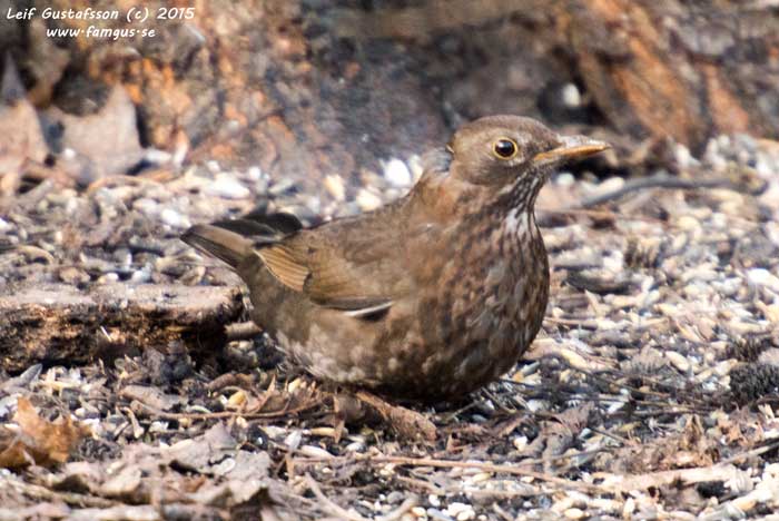 Fortsatte sedan till matningen. Stod där en stund och det blev några trevliga bilder. Fyra arter där: Talgoxar, blåmesar, nötväckor och koltrastar. En större hackspett var snabbt nere en gång, såg dessutom en nötskrika på håll.