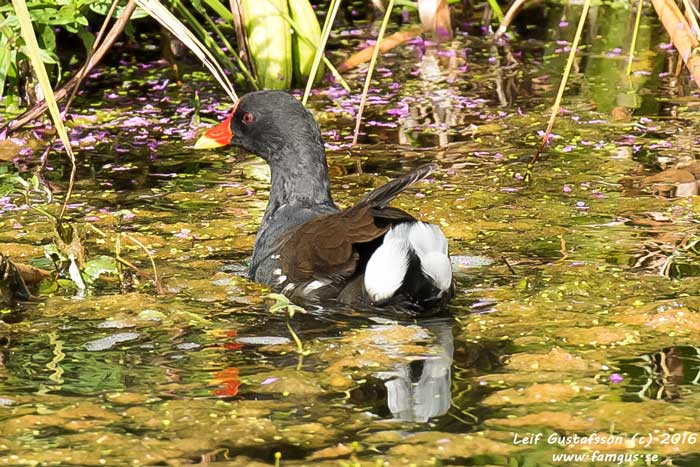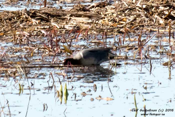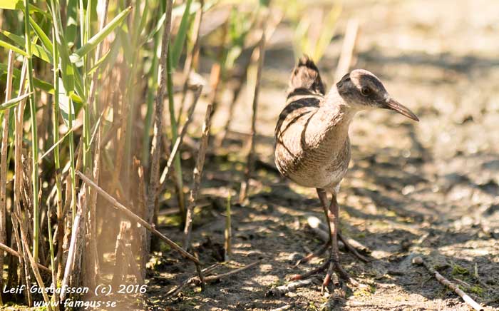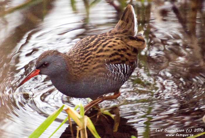 Roligt var också att få se Vattenrallen igen. När vi kom bort till "rören" satt två herrar där på stolar och ytterligare två stod brevid. När vi kom fram så pekade de genast ut Vattenrallen som var framme nästan vid vägen i sitt födosökande. Sen blev den skrämd att högljudda rop från ett barn och försvann som ett skållat troll ut mot vassen. Herrarna på stolarna berättade att när de kom så hade Vattenrallen befunnit sig på insidan av vägen och kommit ilande tväts över densamma när de kom. De hade varit här varje år i minst 10 års tid för att se fågeln. Förmodligen är det ett "barnbarn" till den första de nu tittar på.
