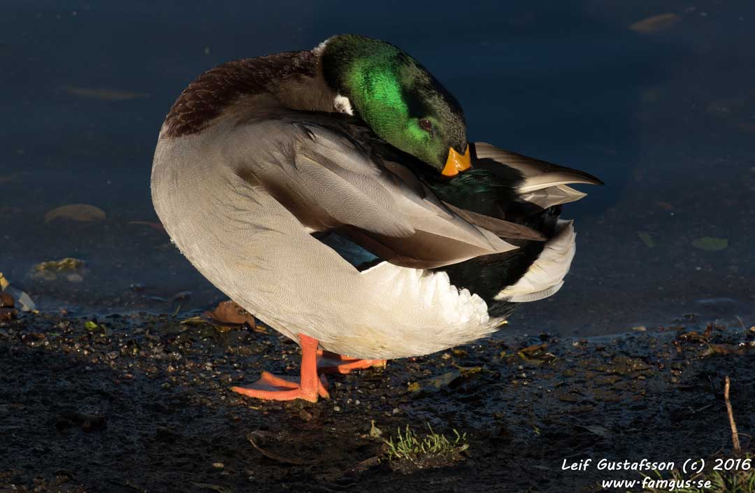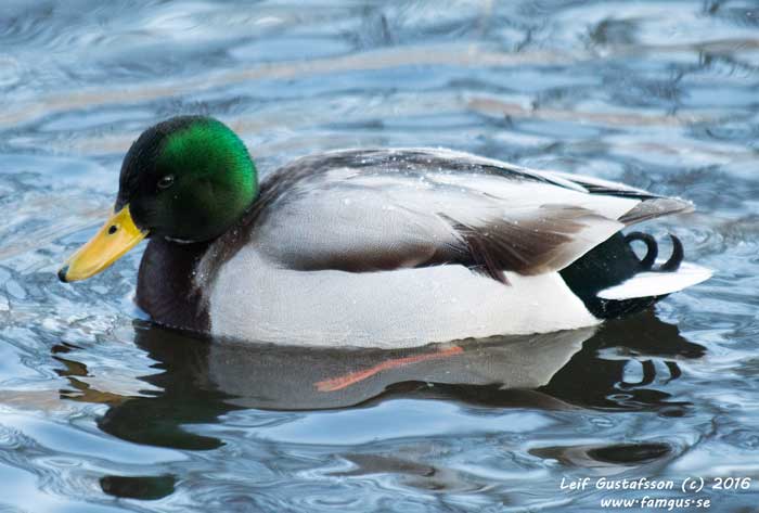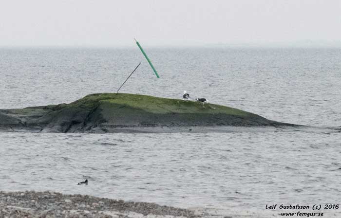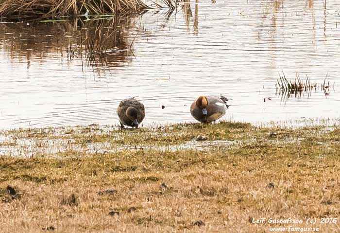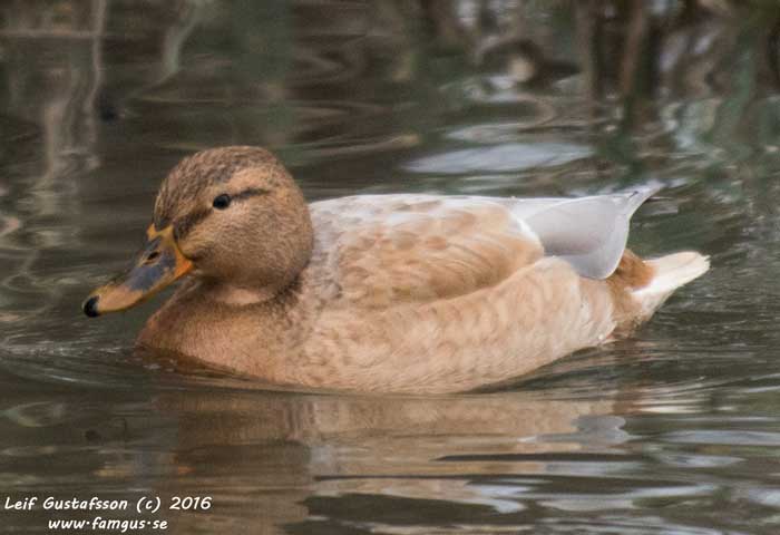 På vägen tillbaka såg vi en lustigt färgad Gräsand. La ut en bild på SOF's frågespalt och fick svaret: "Denna individ är leucistisk och saknar det svarta-gråa pigmentet eumelanin, medan feomelaninet finns kvar". Fågeln ser du här nedan.