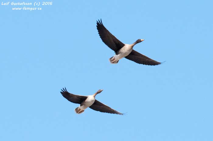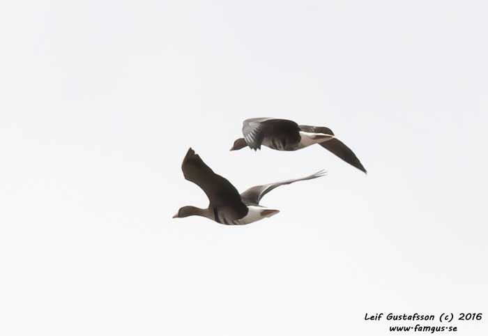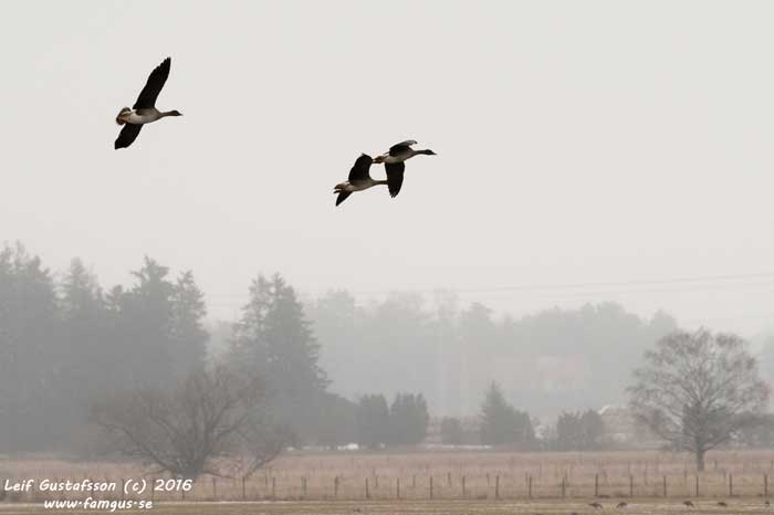 Och visst hade jag det. Jag åkte direkt bort till Hårbyparkeringen och gick ut till fågeltornet. Ganska raskt kunde jag få in ett ca tiotal Fjällgåss som tydligen låg där de alltid brukade ligga. Kul var det i alla fall. Man såg tydligt bläsen och orbitalringen runt ögat som identifierar arten.