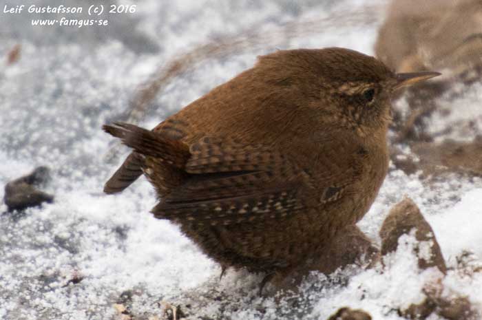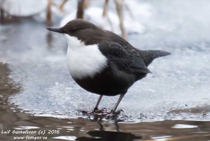 Dagen var kall och klar. Minus 13 när jag klev upp. Parkerade på kyrkoparkeringen som sist. Idag var jag inte först, 3 bilar stod redan parkerade. Kungsfiskaren hade ju rapporterats runt bron till Prinsvillan (vandrarhemmet). På vardera sidan om ån stod skådare/fotografer redan på plats. Själv gick jag över bron och sedan ett trettiotal meter uppströms. Strömstaren visade sig omgående. Hade jag varit lite snabbare med kameran var den på perfekt fotoavstånd, men den hann ta till vingar innan jag blev klar.