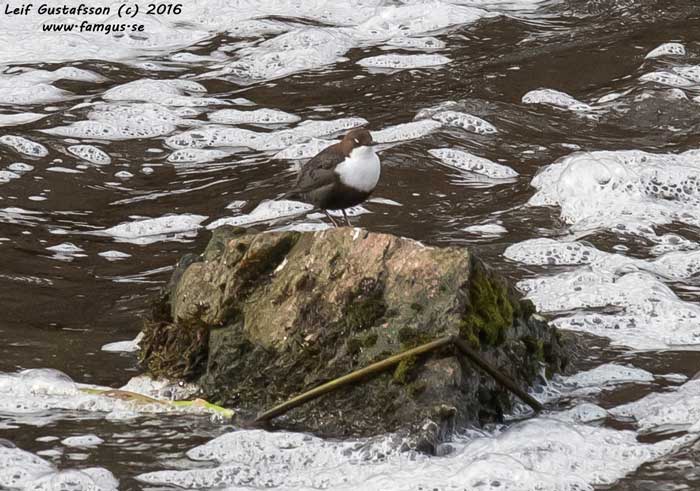 Väl på plats så följde vi Follbrinksströmmen motströms åt sjön Fatburen till, där borde det finnas Strömstarar. Och det gjorde det. Vi såg både Strömstare och en Gärdsmyg vid forsen. Strömstaren såg vi igen på väg därifrån. Bilderna mina blev inte helt lyckade, hade lite på kort slutartid. Men det kommer väl mer chanser. Vi mötte också tre ungdomar i tjugoårsåldern som sökte så många obsar som möjligt av fåglar, växterTräd och insekter. Det var tydligen någon tävling under 2016 att se så mångar arter som möjligt. De hade bara idag närmare 90 obsar!