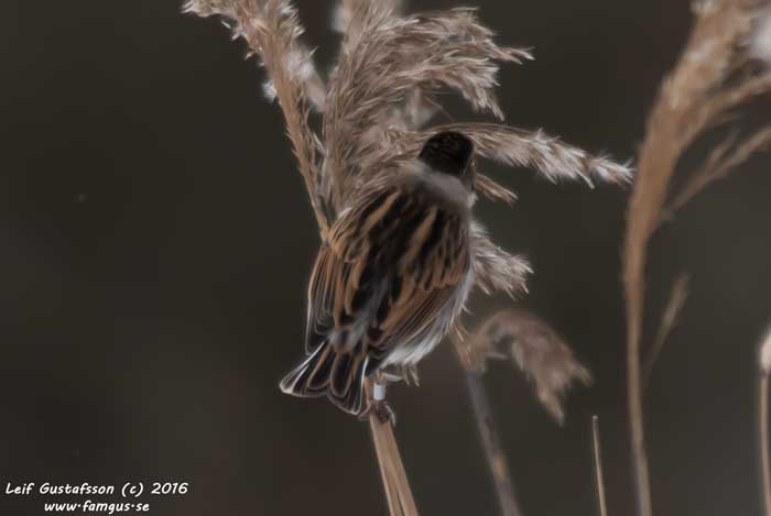 Tog mig sedan ut till vägen längs ett staket för att se om jag kunde få syn på Kungsfiskare, men icke. Däremot såg jag en Sävsparv som klängde omkring i vassen. Sen kom en mink fram på isen och visade sig precis i öppningen i dammluckorna. Kul men annorlunda obs.