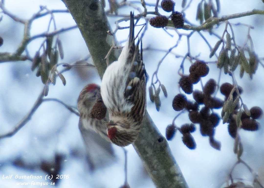 Det var kallt. Fingrarna kändes stundtals djupfrysta, men det var en hel del fågel ute. Vid golfängarna klängde ett gäng Gråsiskor runt i toppen av en al. Hade själv gått förbi trädet med hustrun var uppmärksam.