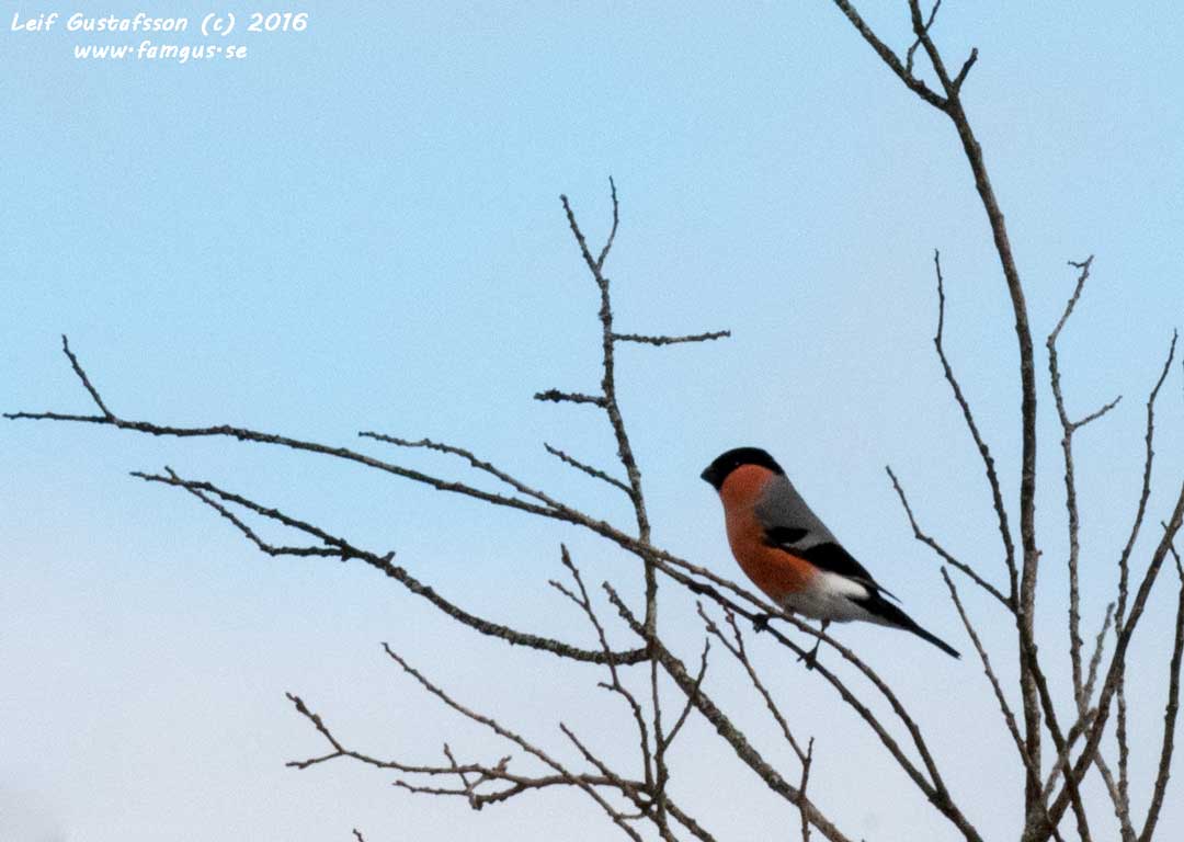 På tillbakavågen vid Golfängarna såg och hörde vi en mängd siskor från trädtopparna. Det var en del större fåglar med i topparna så jag tog några bilder för att kunna kolla hemma. Vi kunde på bilderna bekräfta våra anataganden från platsen att det var både en Domherre hona och en Steglits med i trädtoppen.