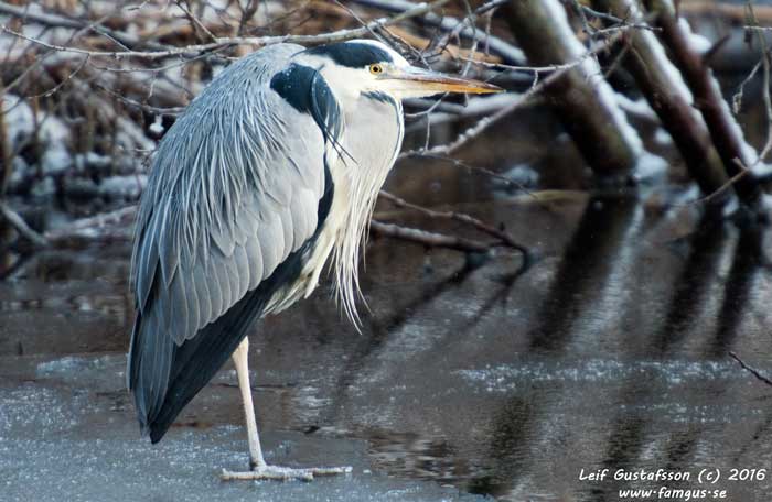 Var ute i nästan 3 timmar. Två varv runt Råstasjön och nästan ett varv runt Lötsjön blev det. Sedan var fötterna som isbitar. Kallt är det ute fortfarande, runt 7-8 minusgrader och halvklart. Det roligaste på rundan idag var de två Hägrar som hade slagit sig ner i en gran. Såg lite lustigt ut, snudd på felplacerat.