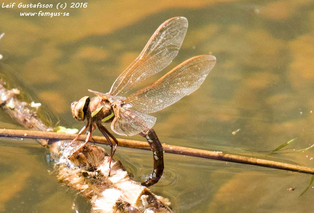 Började vid groddammen och stigen ner mot fågeltornet. En hel del trollsländor flög. Såg bl.a. blågrön mosaikslända, ett par som flög förbi hopkopplade i ett parningshjul. Såg också en äggläggande Brun mosaikslända i groddammen.