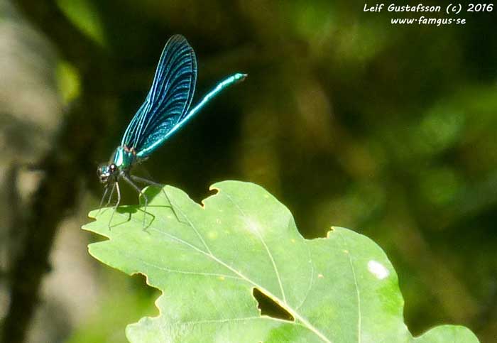 Denna gång såg jag klart fler trollsländor än förra gången. Solsken gör mycket. Är det inte sol ute så verkar inte trollsländorna flyga, så enkelt är det. Denna gång fick jag se tre olika mosaiksländor med start redan vid bäcken vid golfängarna. Såg även ett par Stenknäckar fara runt bland trädkronorna.