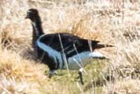 Vi stannade längs vägen strax innan Kokullen. Och där var den ju. Mitt ibland mängden av Vitkindade gäss gick den och stoppade i sig av det frodiga gräset. Ja just det, den Rödhalsade gåsen. Ibland ska man ha tur, den fanns alltså kvar. Efter en bra stund, och många fotografier senare (dock ingen bra ...), gick vi ut till fågeltornet. Väldigt lite folk ute. Vi hade sällskap att bara ett annat par i fågeltornet. Det blev en hel nya arter för året.