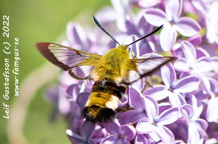 Ingenting i Tornparken, men på Budlejan vid Lekparksvägen fanns det två stycken. Vi blev kvar en lång stund och tittade fascinerat på fjärilen. Det sätter sig sällan, utan hovrar utanför blommorna precis som en kolibri och använder sin långa suganbel för att få i sig nektaren från blommorna.