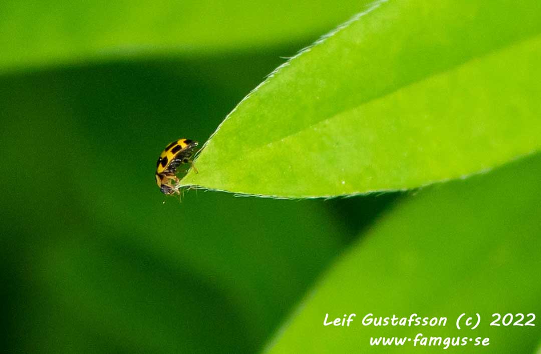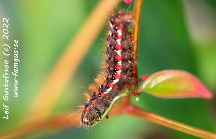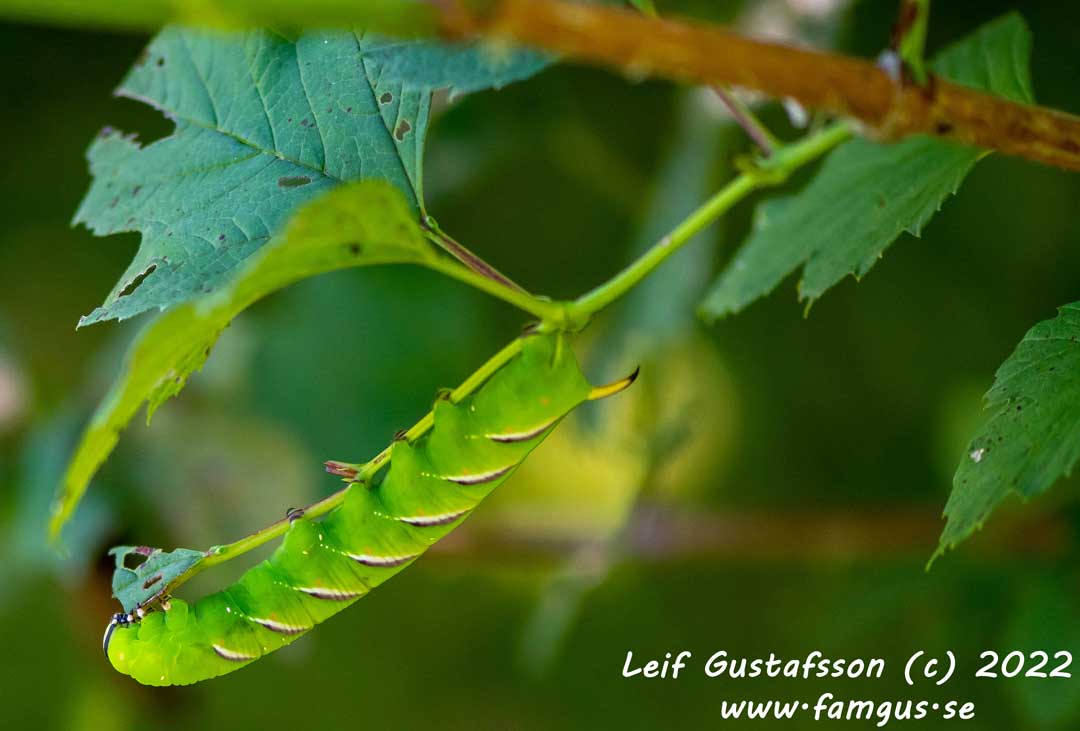 Det roligaste med den sista var att jag egentligen fotograferade blomman Gulsporre. Inte förrän hemma vid datorn upptäckte jag larven ...