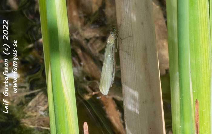 Många trollsländor flög över den lilla gölen. Främst Blågröna mosaiksländor, men en och annan Brun mosaikslända. Gott om Pudrade smaragdflicksländor också. Såg även fyra fjärilslarver. En död larv av Brunsprötad skymningssvärmare, men tre levande varav jag artbestämt två (Blågrått aftonfly samt Gulsporrefly).